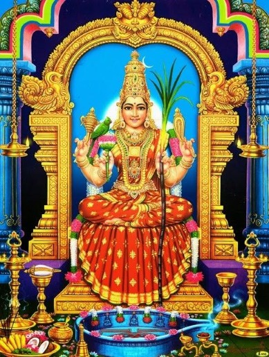 Meaning: Her lower legs glow like red beetles, resembling Kama’s quiver, radiating beauty that inspires love and devotion, both worldly and divine.